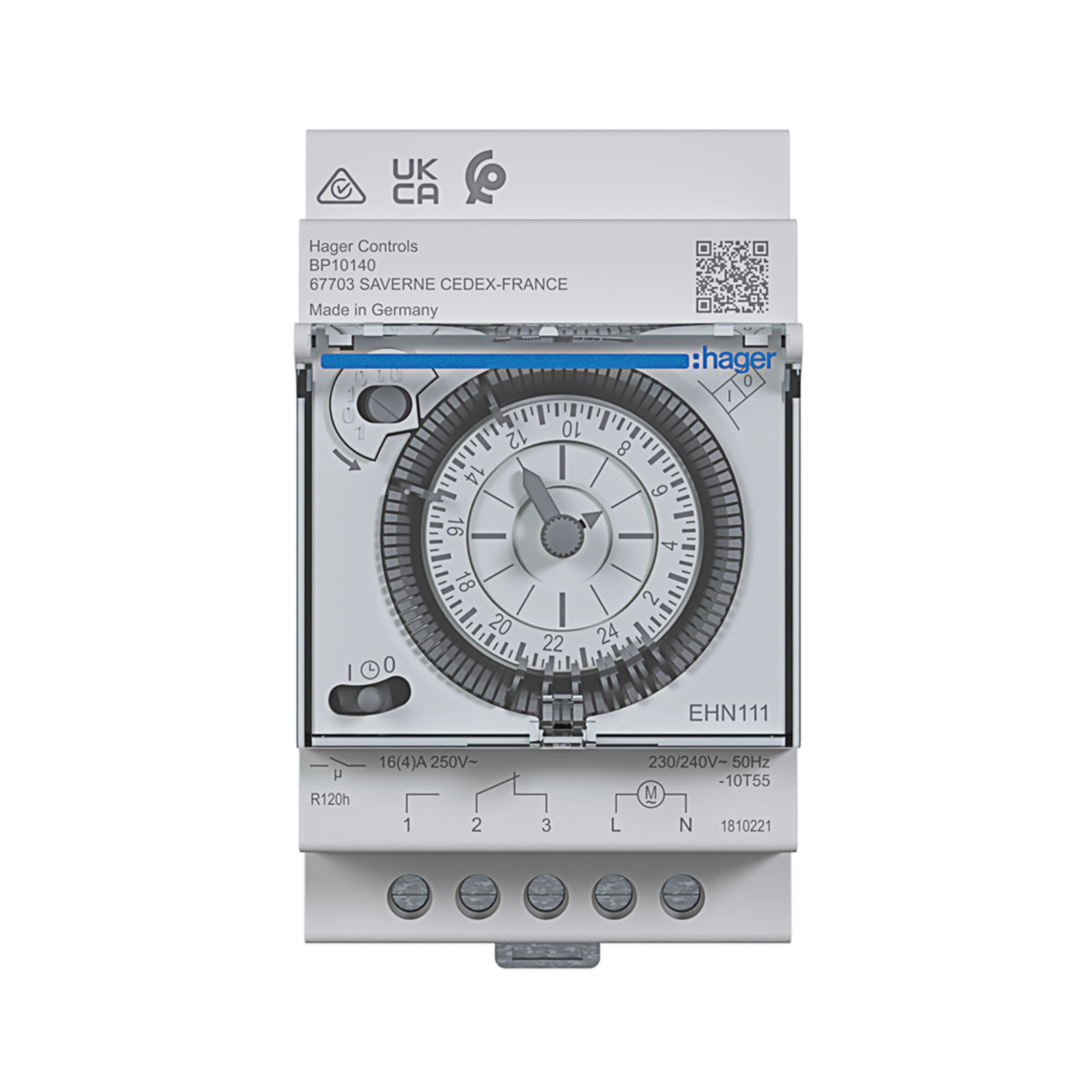 En résumé, le Hager EHN111 est un interrupteur horaire journalier analogique 1 canal avec réserve, robuste et fiable, idéal pour des programmations répétitives et sécurisées dans les tableaux résidentiels ou tertiaires.