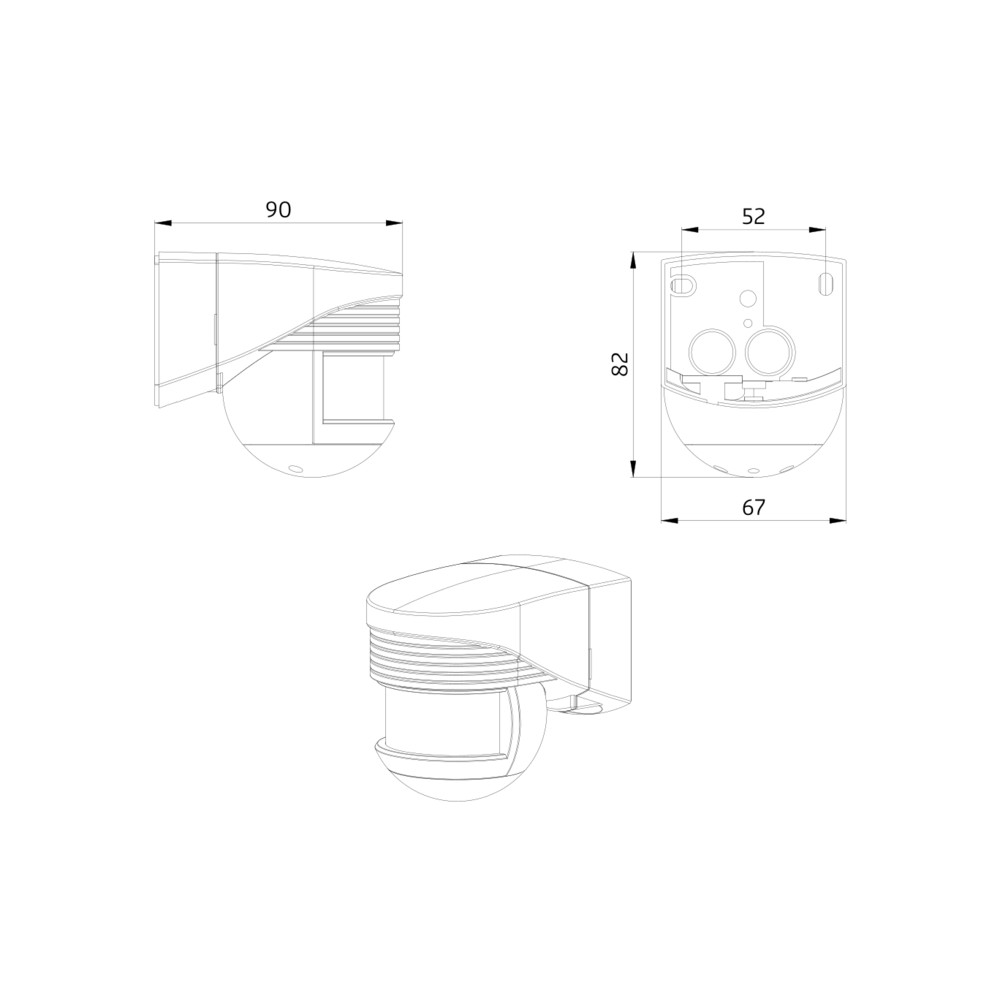 Autres information : Tête sphérique orientable, montage aisé par socle enfichable, zone de détection limitable par obturateurs, possibilité de marche forcée via interrupteur externe et d’allumage manuel 1 min avec bouton‑poussoir normalement fermé.