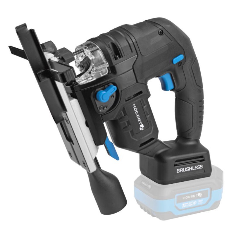 La HOGERT HT2E233-0JS est une scie sauteuse sans fil brushless 18 V, conçue pour les coupes droites, courbes et transversales dans le bois, les panneaux dérivés et les plastiques.