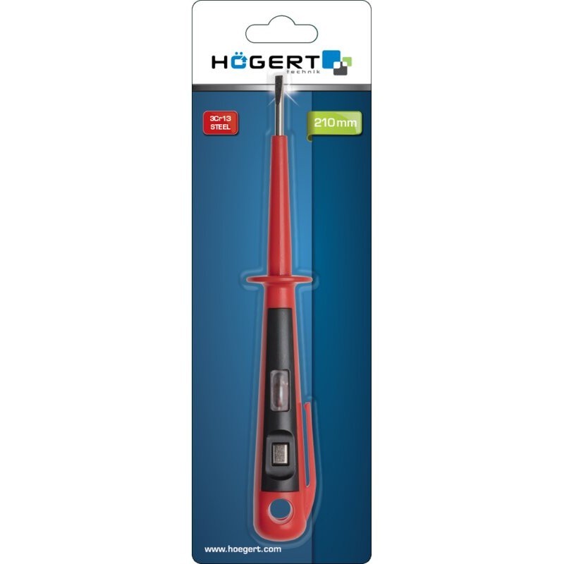 Tournevis testeur de tension 100-250V plat pour électricien indication de tension voyant lumineux intégré dans le manche - HOGERT HT1S981