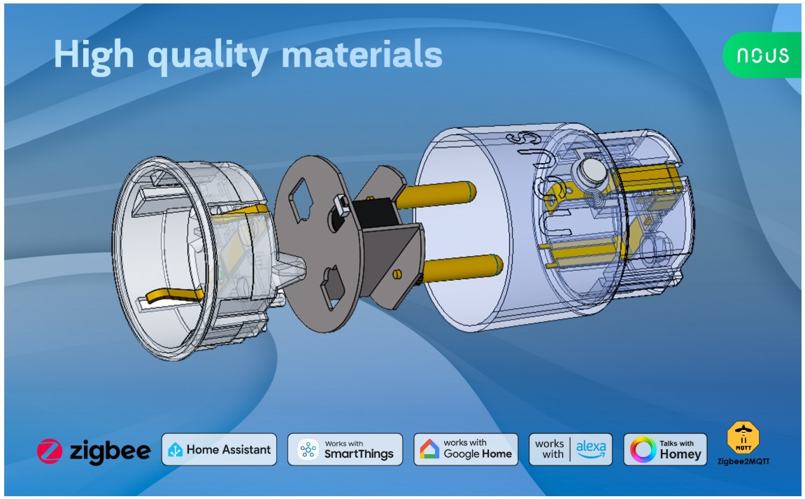 La prise intelligente Zigbee NOUS A1Z (ci-après dénommée la prise intelligente ) est conçue pour organiser l'arrêt automatique et manuel des appareils électriques de la pièce, à l'aide d'un smartphone avec l'application.