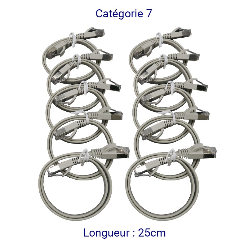 Cordons RJ45 plats Cat 7 FTP 25cm - OLTRIX Lot de 10 pcs