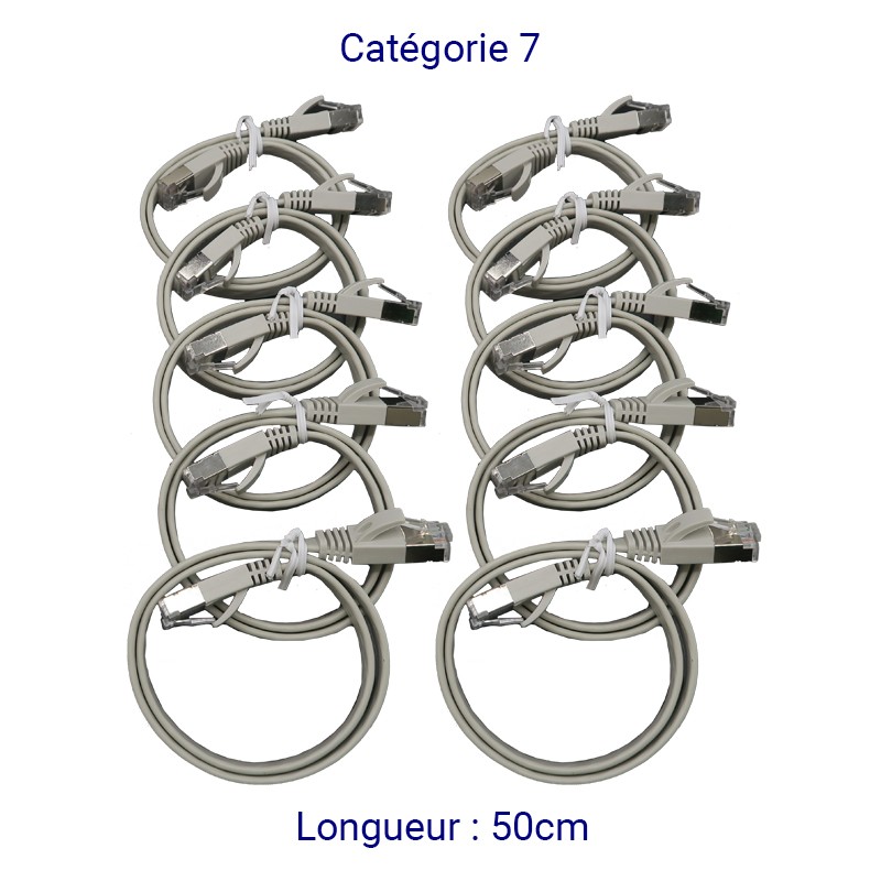 Cordons RJ45 plats Cat 7 FTP 50cm - OLTRIX Lot de 10 pcs