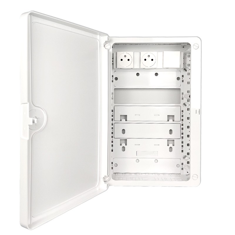 • Compatible box ADSL/fibre, s’installe en saillie sur un mur, sur la GTL largeur 250mm ou en encastré dans les bacs.