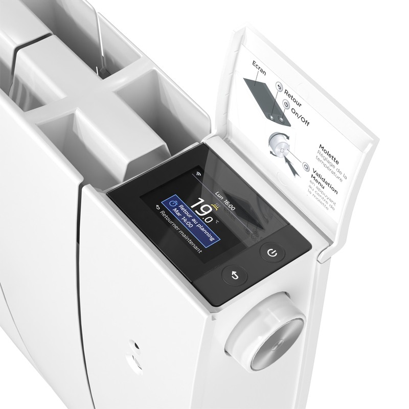 Pilotage intelligent : le radiateur s’adapte à votre rythme de vie pour un confort optimal et plus d’économies d’énergie.