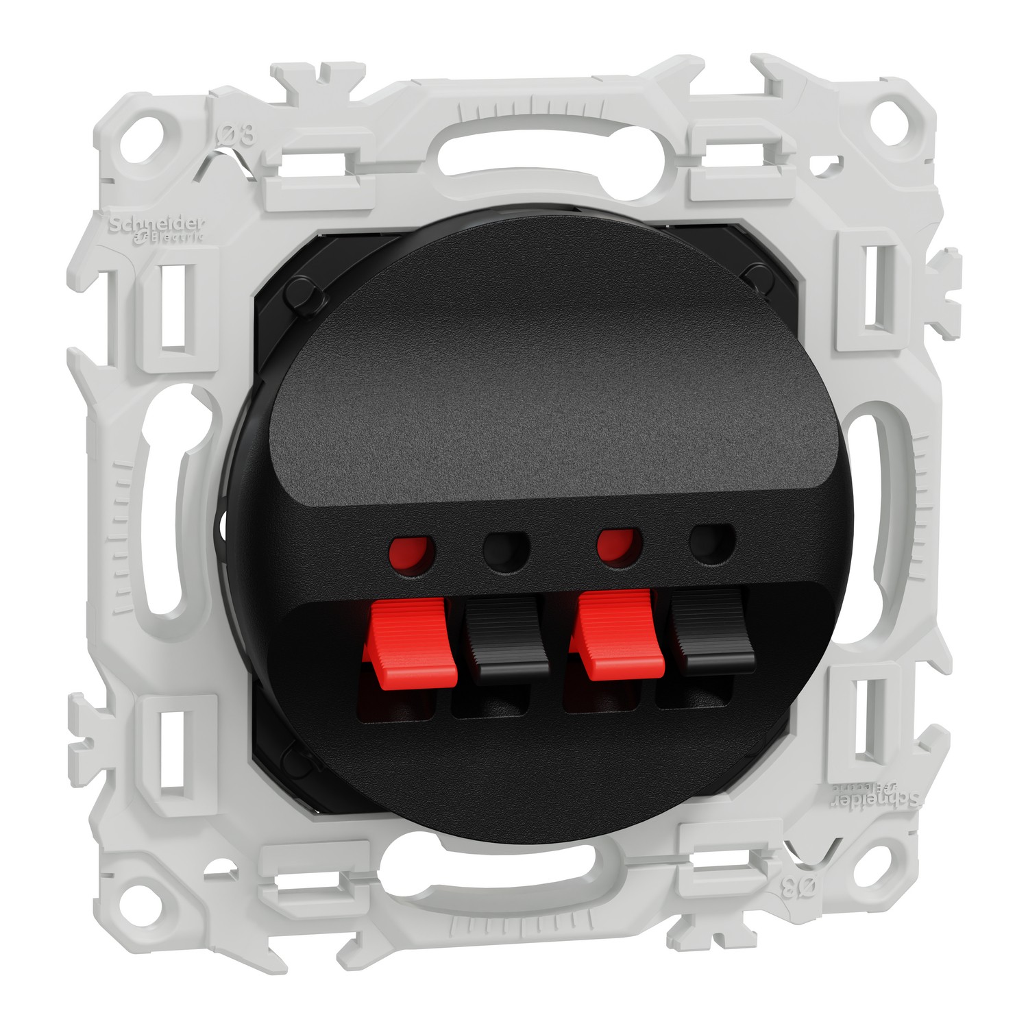 Odace Prise haut parleurs double 2 sorties Ă poussette Noir Onyx - SCHNEIDER S940488