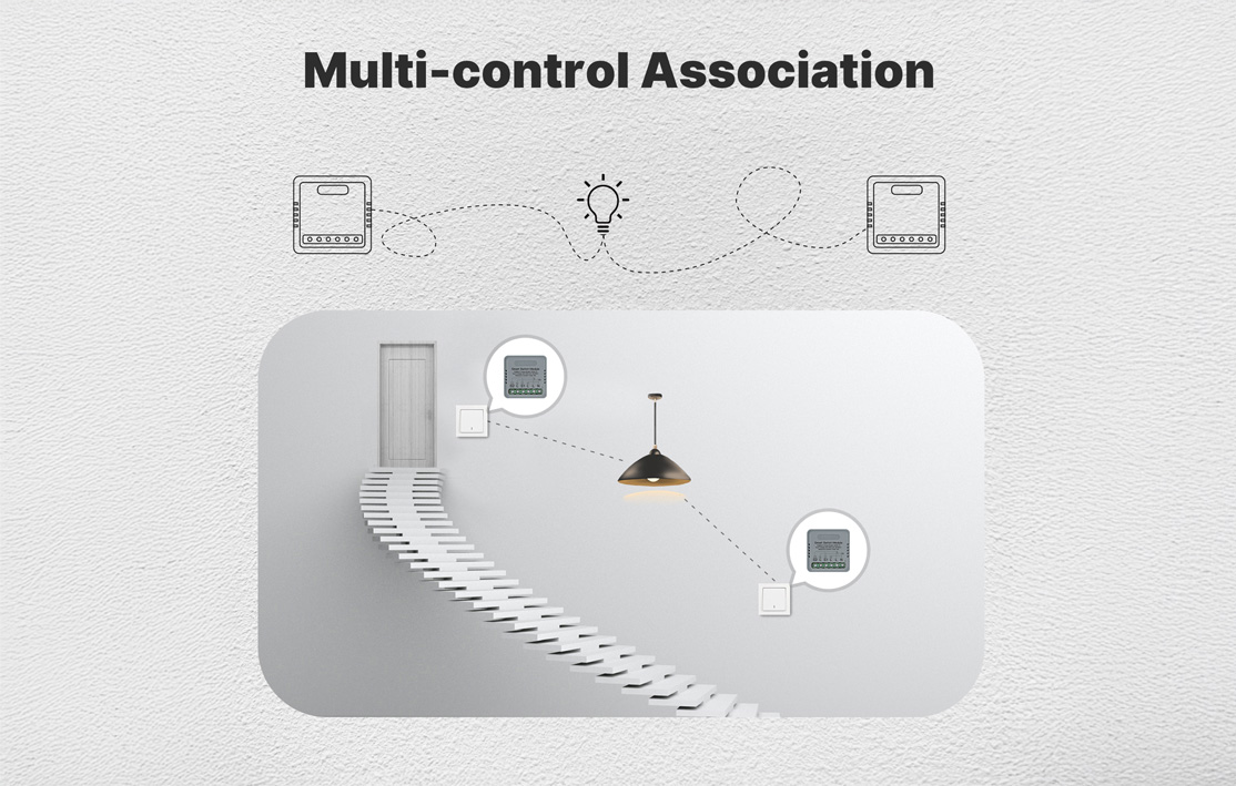 Ce module permet de contrôler à distance deux appareils électriques via une application mobile ou des assistants vocaux, offrant une intégration facile dans un système domotique existant et une installation discrète dans un boîtier d’encastrement standard.