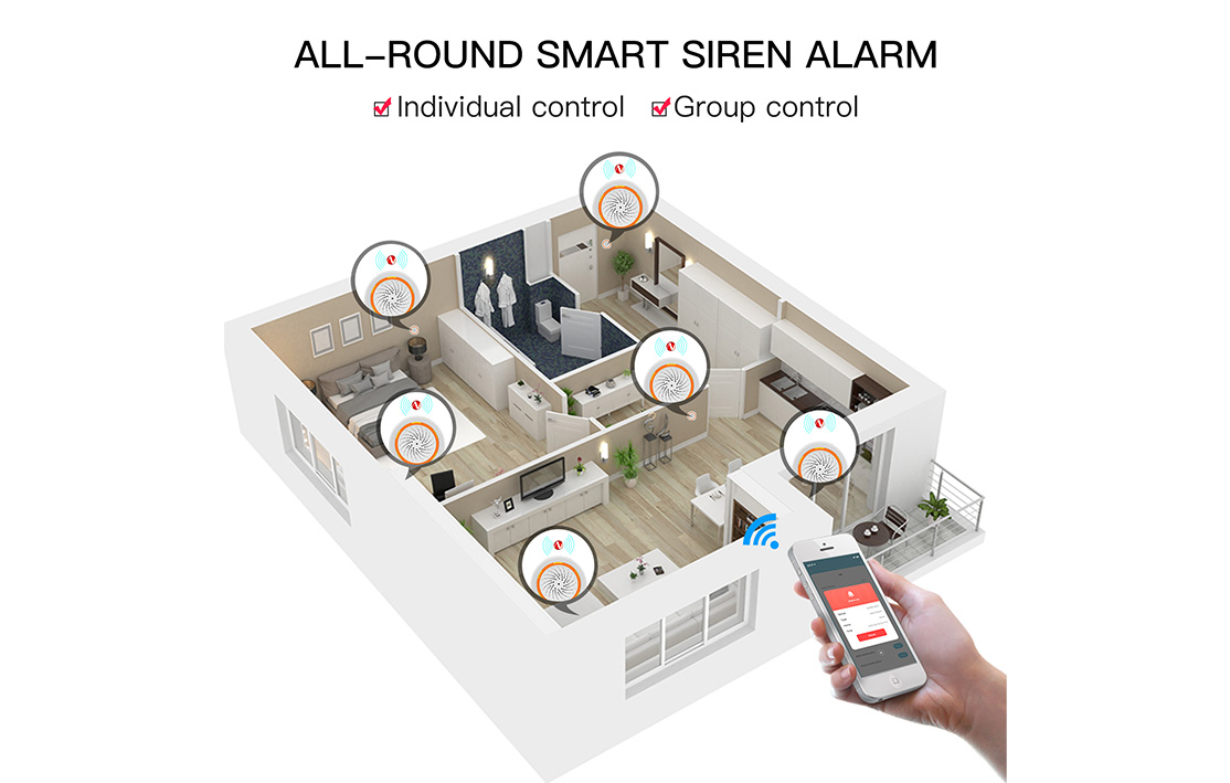 Sirène ZigBee 90dB avec lumière - MOES ZSS-LO-SLA-U