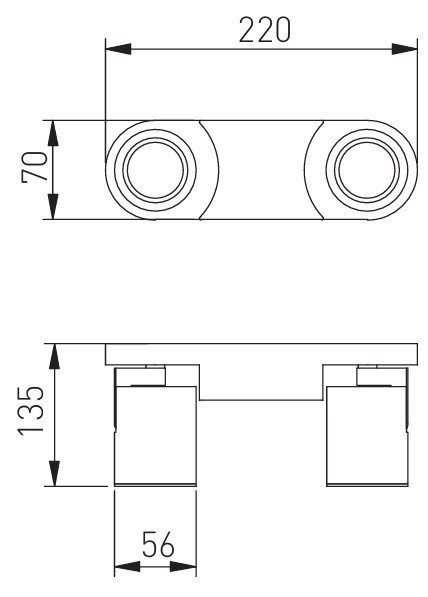 Fiche technique Plafonnier à spot GU10 double noir GTV Blink - GTV OS-BLND50W2-00