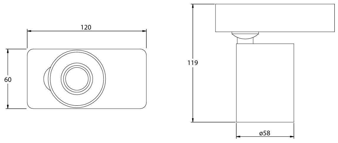 Système de fixation : Longueur : 120mm, Largeur : 60mm , Hauteur (avec spot) : 119mm