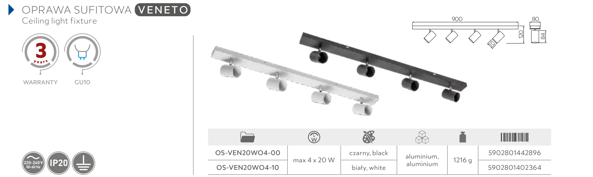 E-catalogue Plafonnier à spot quadruple GTV OS-VEN20WO4-00