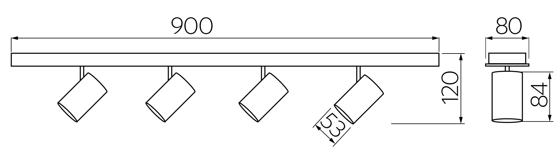 Structure de fixation Longueur : 900mm Hauteur (avec spot) 120mm