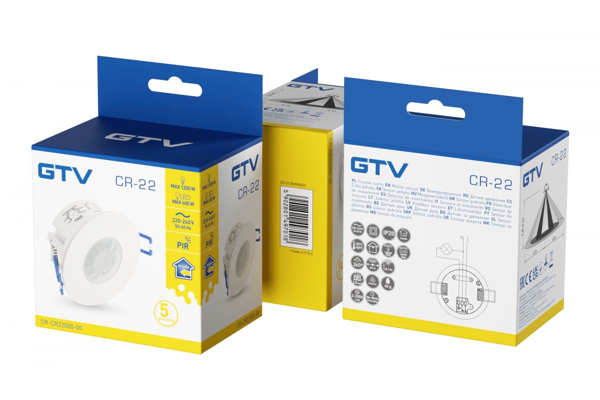 Le GTV CR-CR22000-00 est un détecteur de mouvement PIR CR-22 compact et performant, idéal pour automatiser l’éclairage des circulations, bureaux ou pièces de vie tout en améliorant confort et économies d’énergie.
