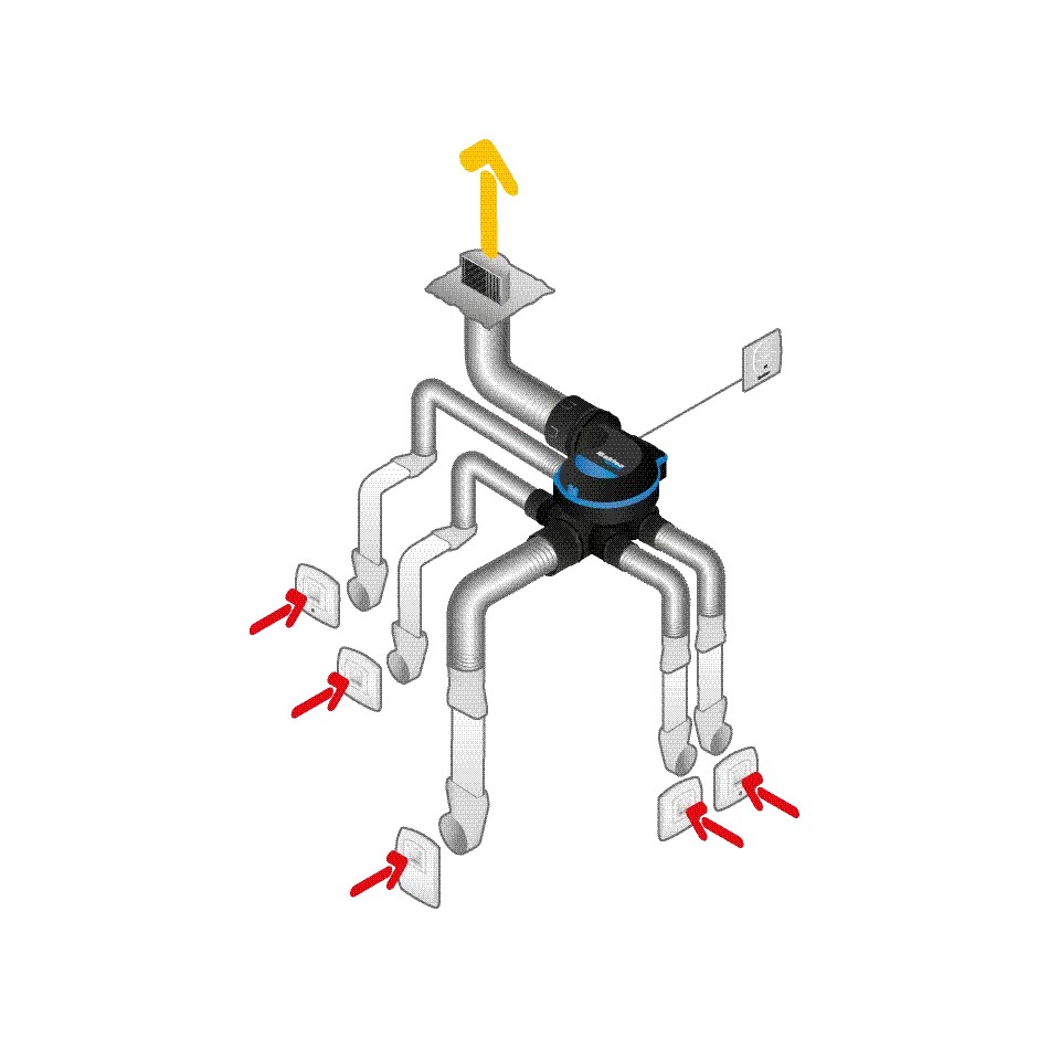 VMC simple flux hygroréglable basse consommation, 276 m³/h, 35W, classe B, 7 piquage