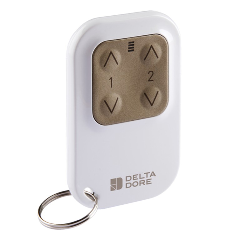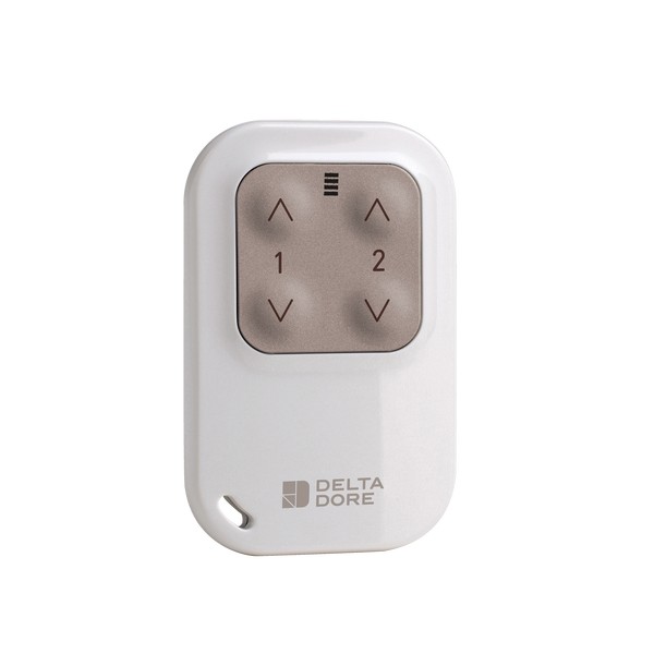 Autres information : Télécommande 2 voies principale (jusqu’à 4 voies suivant produits associés), retour visuel d’information, résistante aux chocs, accroche porte-clé fournie, nombre de récepteurs associé illimité, compatible fonctions de maillage radio de l’écosystème Delta Dore.