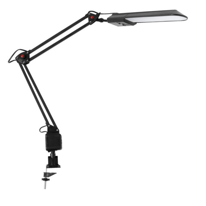Elle est conçue pour le bureau ou le bureau d’étude, avec un bras très orientable, une lumière 4000 K confortable pour la lecture et le travail, un interrupteur sur la tête et une pince permettant de la fixer au bord d’un plateau.