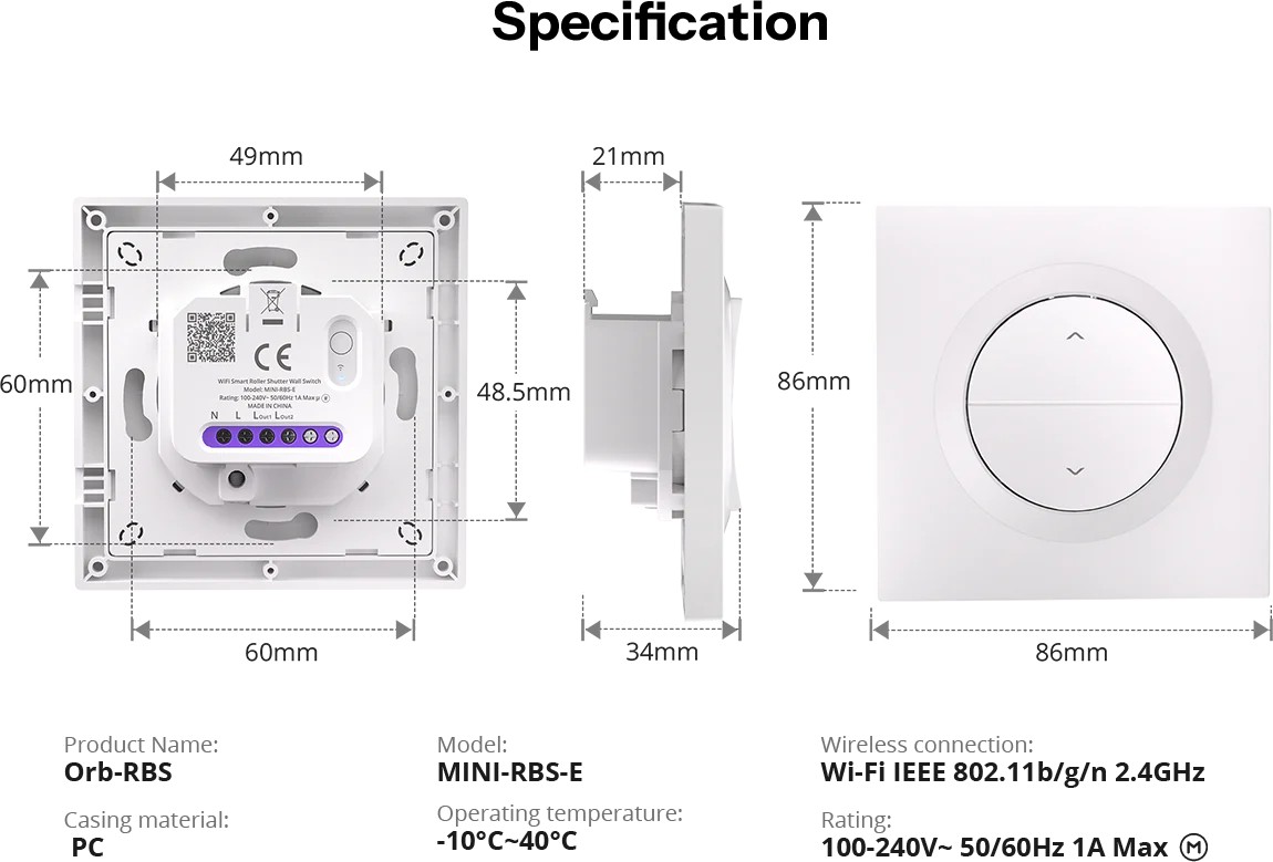Autres information : Basé sur MCU ESP32 avec mises à jour OTA sécurisées, commande vocale, gestion en groupes et scènes, configuration manuelle souple (inversement de sens, temps de course), conçu pour une intégration Matter pérenne dans des installations de volets existantes.