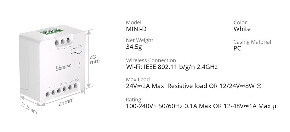 En résumé, SONOFF MINI‑D est un module contact sec ultra‑polyvalent, compact et Matter, idéal pour rendre intelligents des équipements classiques (portes, chaudières, petits moteurs DC, électrovannes) tout en restant simple à intégrer dans les principaux écosystèmes domotiques.