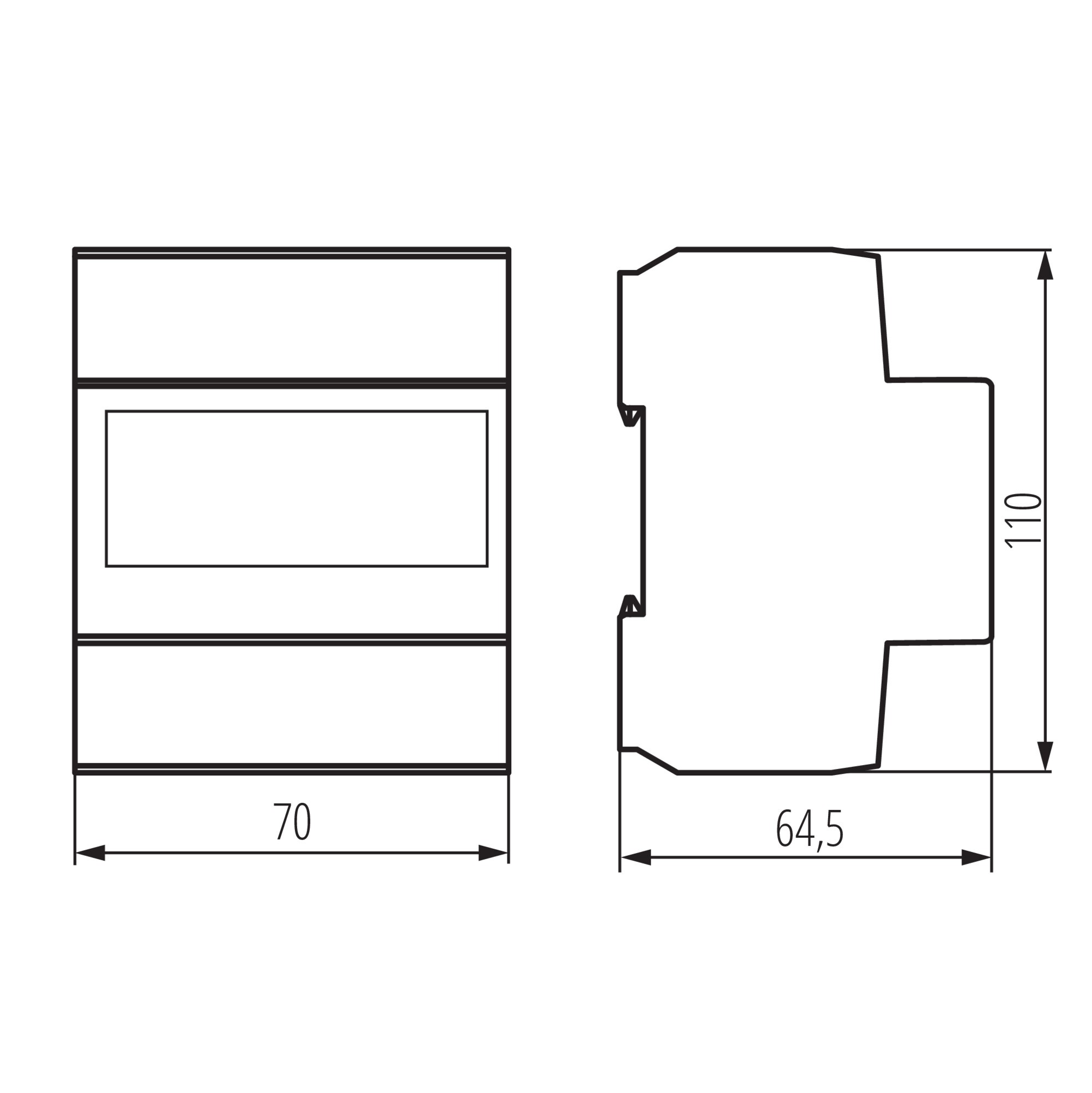 Fonctions : Compteur d'énergie électrique triphasé, mesure et affichage consommation puissance active (kWh), sortie impulsionnelle