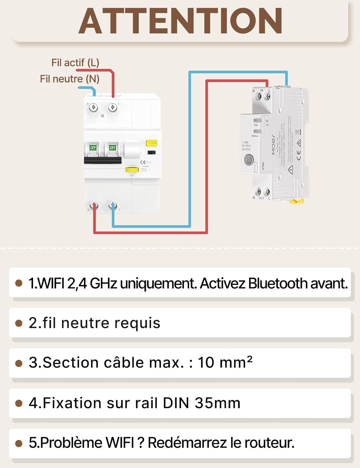 Notice Module ON/OFF connecté WiFi 1P 6-40A - MOES WCB-A5-TW-E1