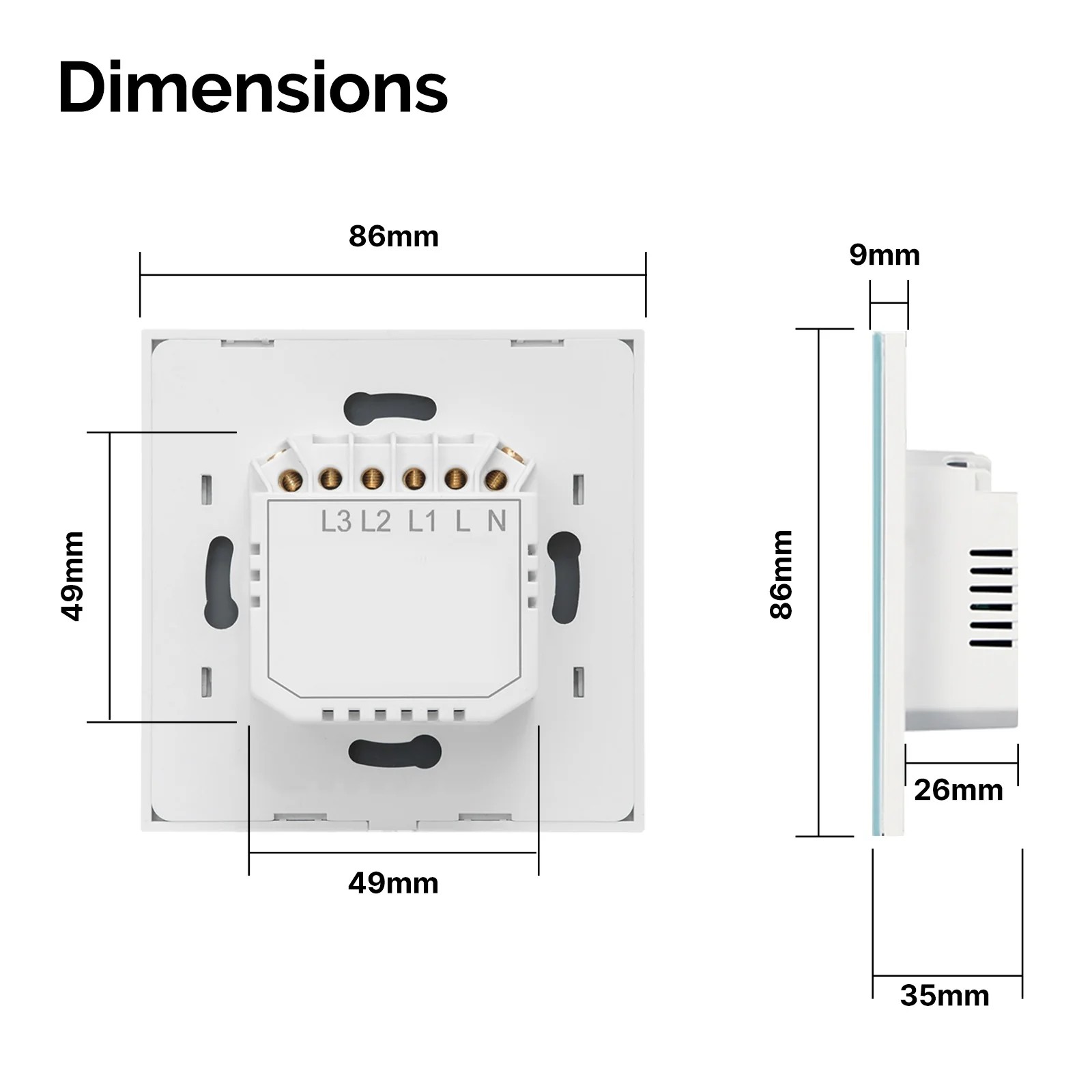 Profondeur d'encastrement : Compatible avec boîtes d'encastrement standard EU (86 mm carrés)