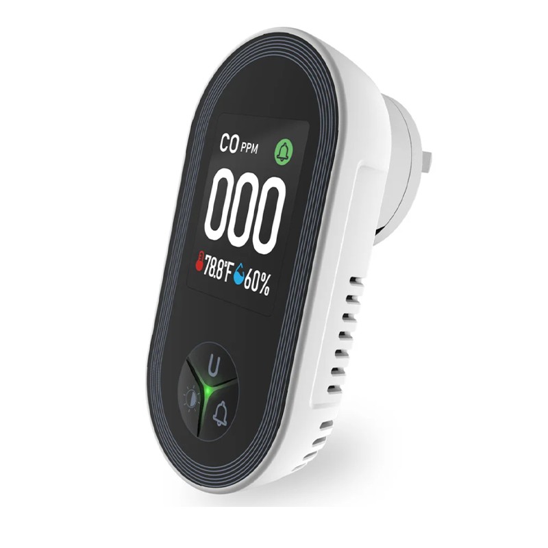 Le MOES S02-CO-EU est un détecteur de monoxyde de carbone (CO) enfichable 3-en-1 avec écran IPS couleur de 2,0 pouces, intégrant également des capteurs de température et d'humidité pour une surveillance environnementale complète de votre habitat. Conçu avec un design compact à brancher directement sur prise secteur, cet appareil détecte les concentrations dangereuses de CO de 0 à 999 PPM avec une précision de ±10% et déclenche une alarme sonore de 85 dB dès que le seuil de 51 PPM est atteint par défaut.