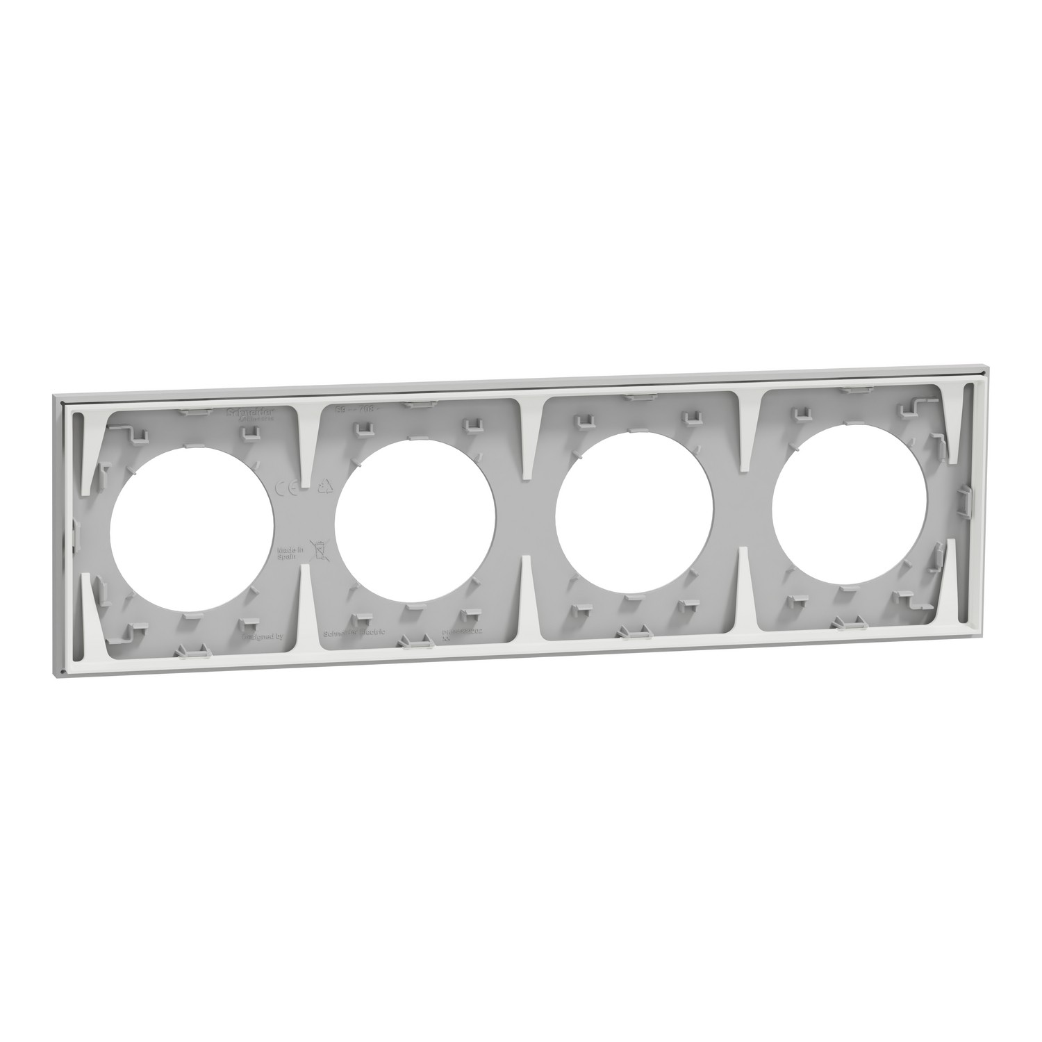 Fonction : habillage décoratif et protection mécanique de 4 mécanismes Odace nouvelle génération, montage horizontal ou vertical entraxe 71 mm