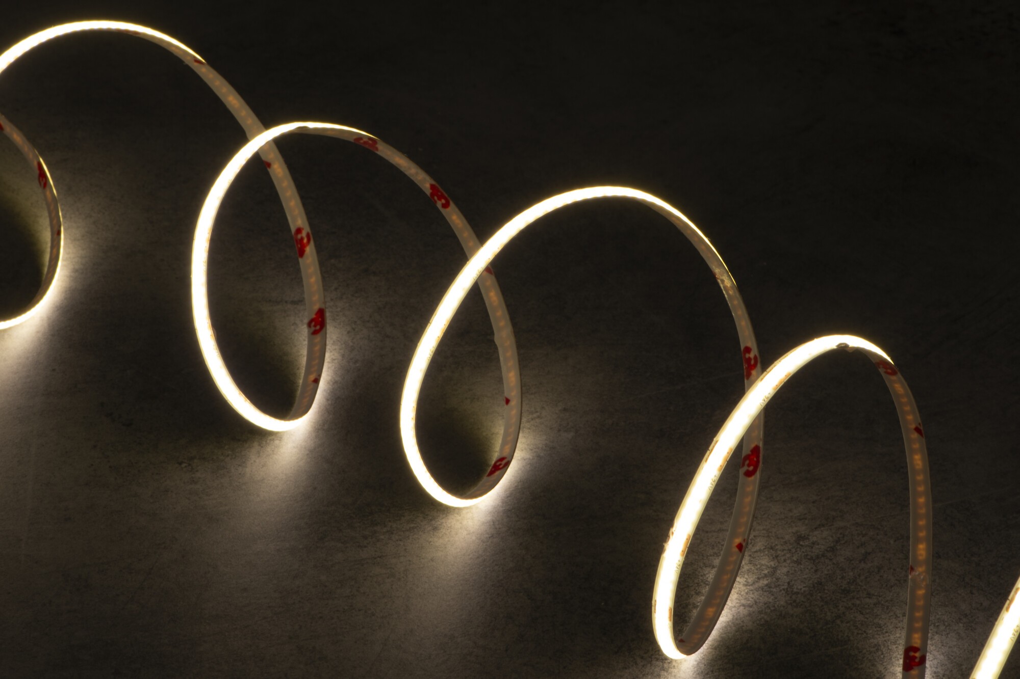 Kanlux LCOB S 8W/M24IP00-WW (code produit 39794) est un ruban LED slim de 5 mm de large, conçu pour créer une ligne lumineuse uniforme sans points visibles, idéal pour l’éclairage de niches et de meubles.
