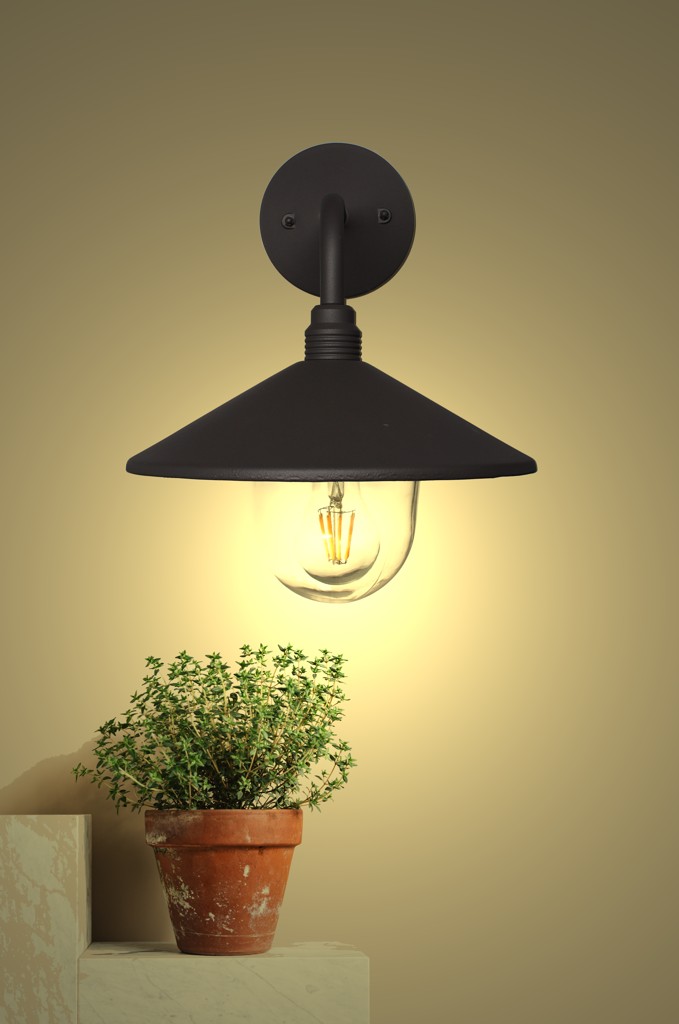 Idéale pour les zones de passage et les terrasses, cette applique permet de choisir librement l’ampoule E27 (LED conseillée) pour adapter puissance, couleur de lumière et consommation, tout en profitant d’un design esthétique et d’une installation murale simple et robuste.