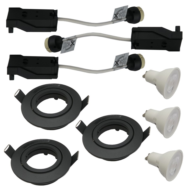 Mode d'installation : Encastré plafond, spots orientables, kit de 3 avec douilles GU10 et connecteur rapide inclus