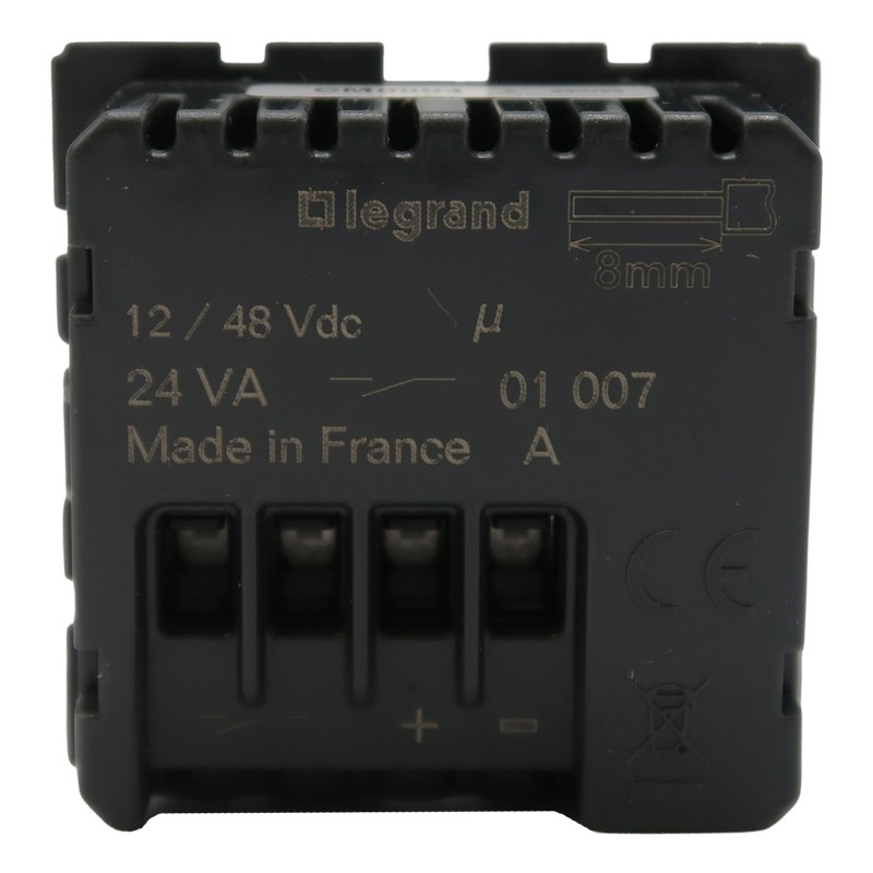 Pour composer une commande sans contact Céliane complète, le mécanisme CM0004 doit être associé à un support, une plaque et à un enjoliveur compatible blanc CB0003, noir CN0003 ou titane CT0003.