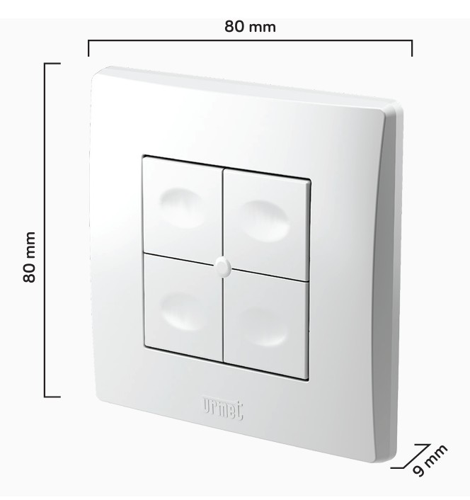 La YOKIS TLM4‑UP est une télécommande murale Zigbee UP extra plate 4 touches, idéale pour piloter plusieurs zones (éclairages, volets, scénarios, centralisations) depuis un seul point de commande mural.