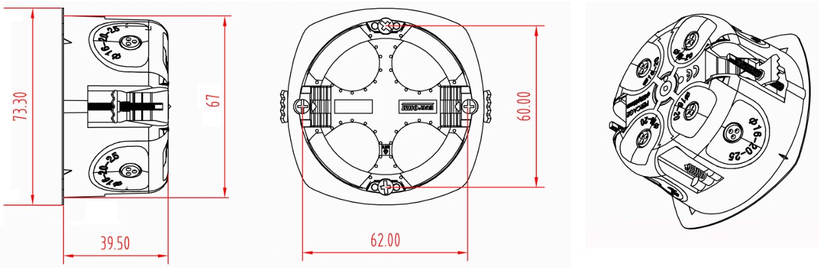 Type de construction : Boîte de jonction/raccordement d'appareils