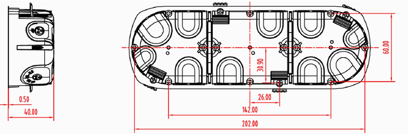 Livré avec une cloison amovible de séparation courant fort/courant faible
