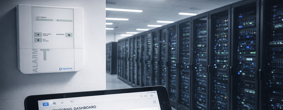 En cas de coupure secteur, la centrale d'alarme technique doit continuer à surveiller et alerter. Batterie intégrée (autonomie 12h à 72h selon modèles) ou onduleur externe selon criticité.
