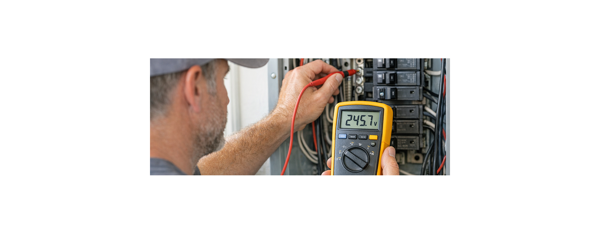 3. Touchez le bornier neutre du tableau avec la noire, la phase avec la rouge. La lecture devrait afficher entre 228 V et 232 V.