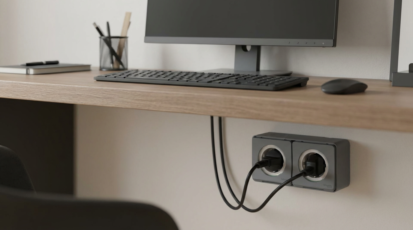 Pour les zones où plusieurs appareils doivent être branchés régulièrement, la gamme Mureva propose des prises doubles, permettant de disposer de deux sorties 2P+T dans un même boîtier. Cette solution est appréciée dans les ateliers, buanderies ou locaux techniques où se multiplient les équipements (outils, chargeurs, petits appareils électroménagers, etc.). Elle limite le recours aux multiprises volantes, qui sont souvent moins sûres en environnement humide ou poussiéreux.