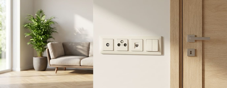 En complément des prises générales, la gamme peut intégrer des prises spécialisées ou des interfaces de communication (téléphone, réseau, TV, etc.), selon les marchés et les déclinaisons. L’intérêt pour l’installateur et le client final est de conserver une homogénéité esthétique sur l’ensemble des postes, même lorsque différents types de prises sont regroupés : l’enjoliveur et la plaque appartiennent toujours à la série Niloé, ce qui garantit une cohérence visuelle.
